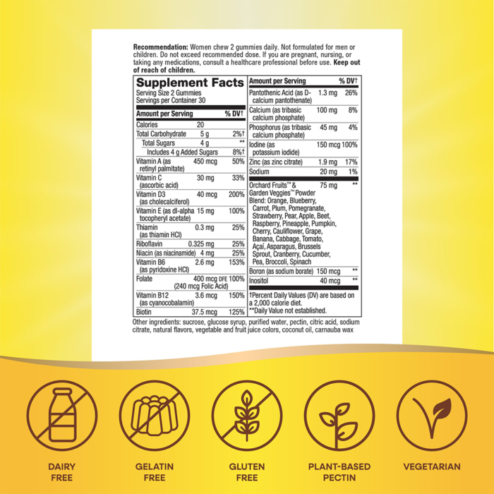 Unlike standard pills that are hard to swallow, Alive Women’s Gummies deliver high-potency vitamins in a delicious fruit-flavored gummy. Infused with the signature Orchard Fruits™ & Garden Veggies™ powder blend (100mg per serving), they bridge the gap between your diet and your nutritional requirements using the power of nature.