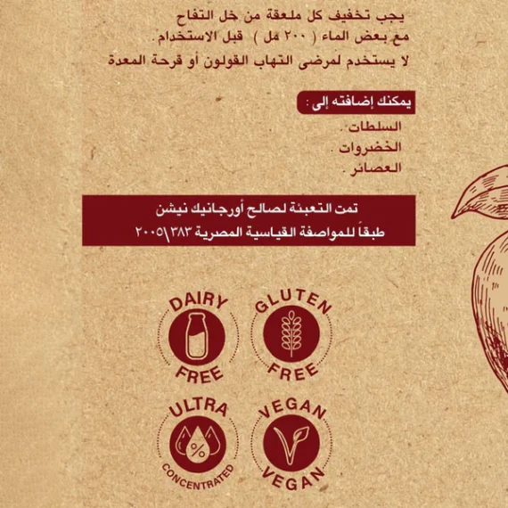 Note: Always dilute 1 tablespoon of Organic Nation Apple Cider Vinegar With Mother in 200ml of water before use. Not suitable for those with stomach ulcers.