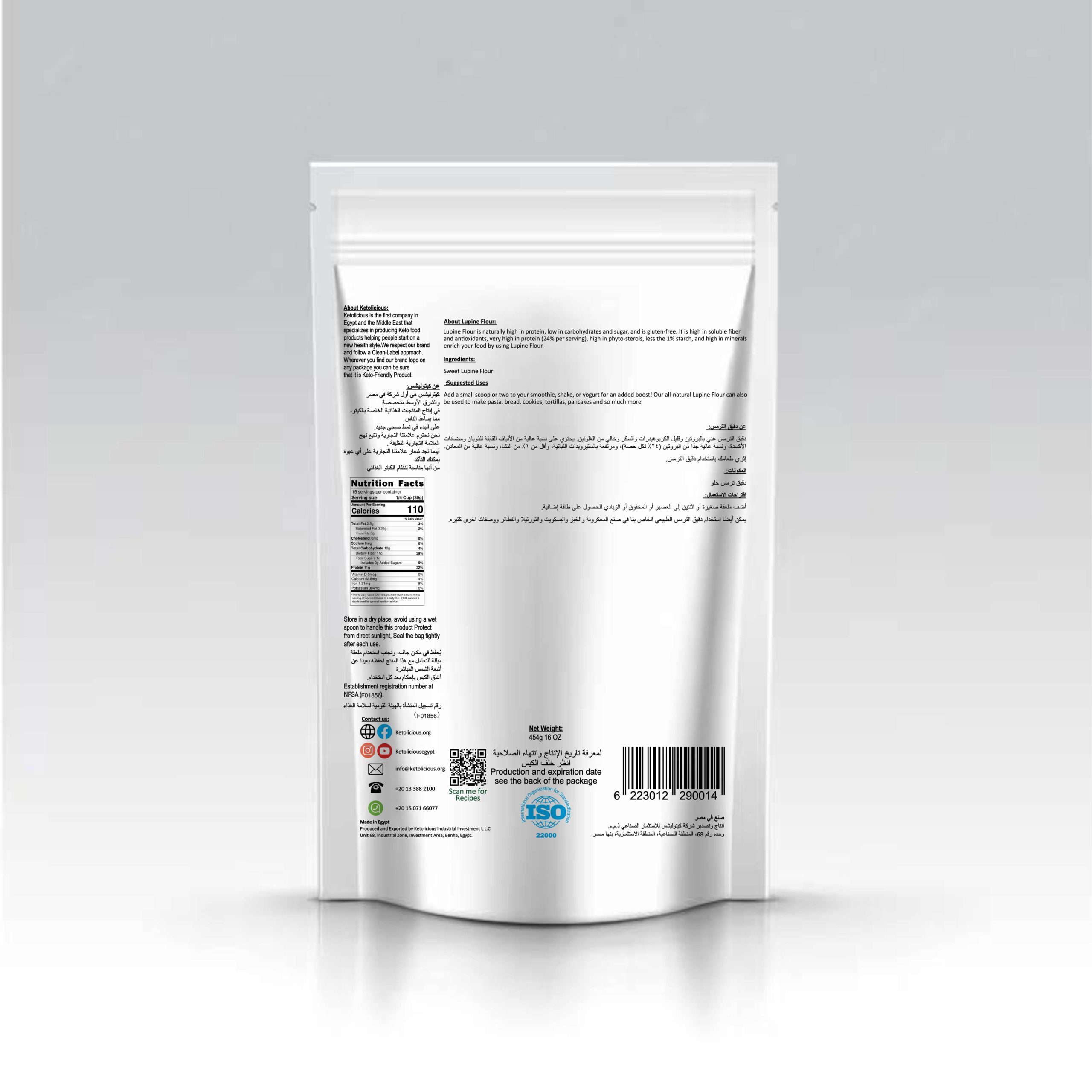 Keto Lupin Flour is a premium low-carb, high-protein flour made from dehulled white lupins. With only 1g net carb per serving, it’s perfect for keto baking, gluten-free recipes, and nutrient-rich smoothies.