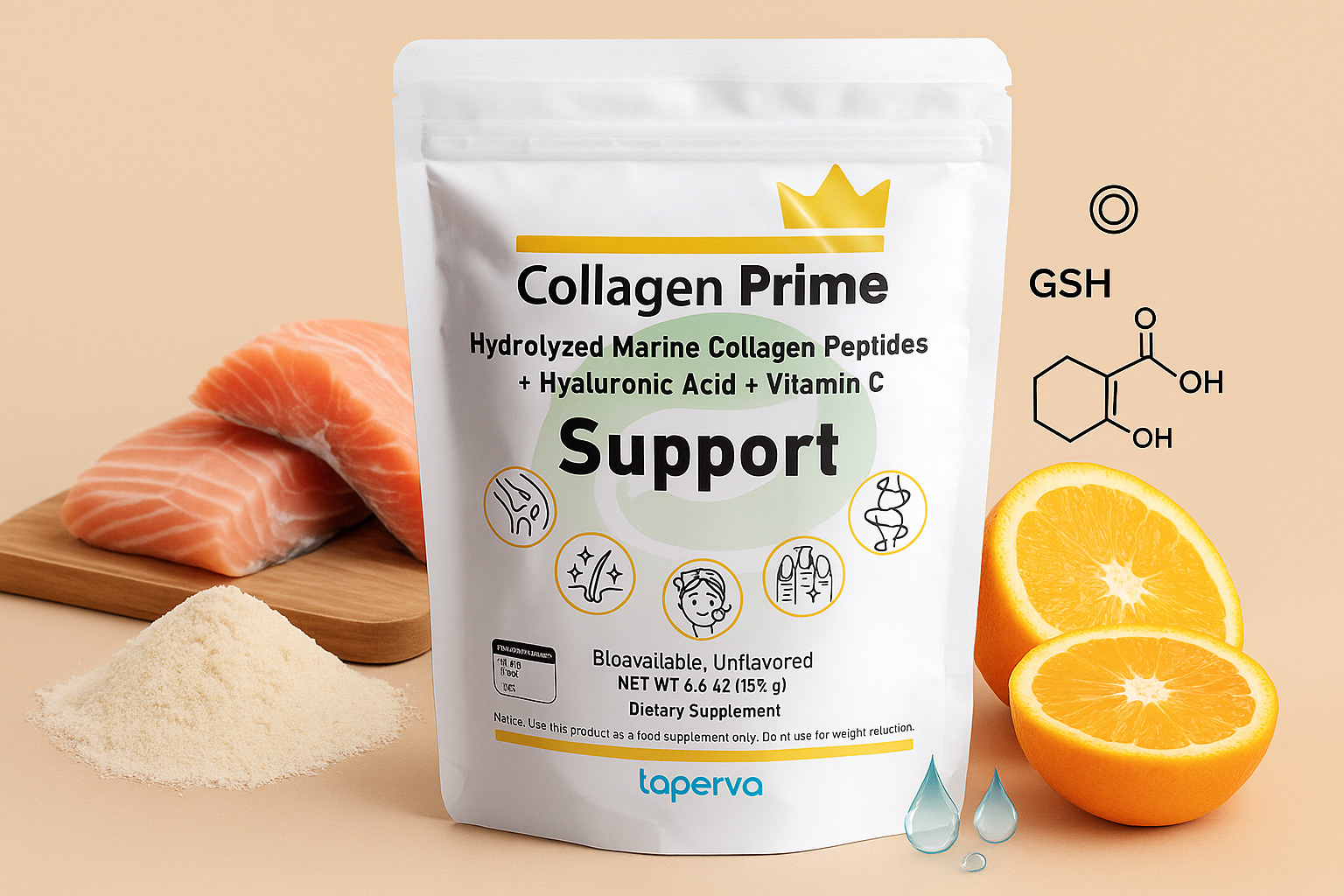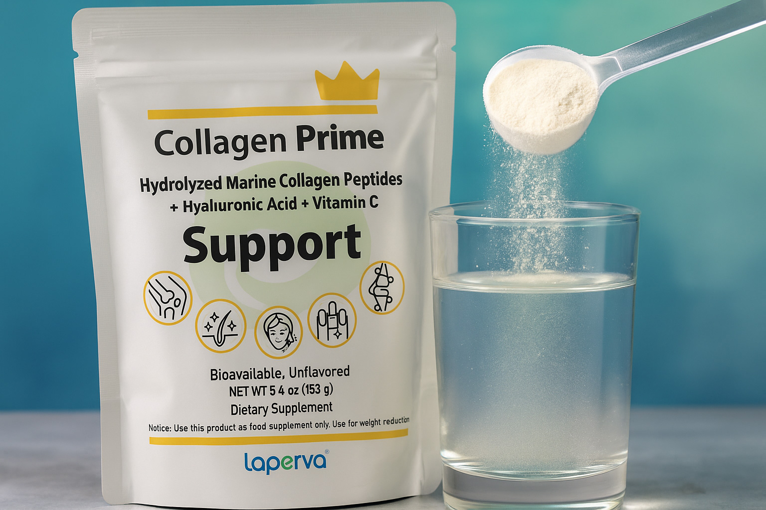 Collagen Prime – Marine Collagen Powder 155g – Hydrolyzed collagen with hyaluronic acid, vitamin C. Supports skin, joints, bones, and muscle recovery. 31 servings.