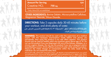 Per capsule: 750 mg pure Creatine HCL.