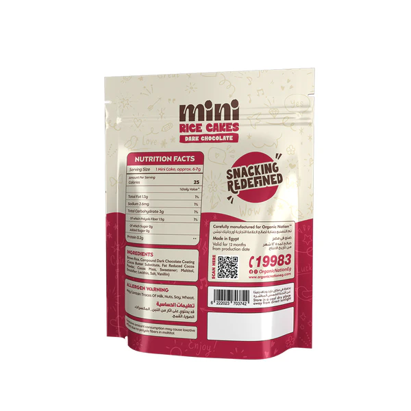Discover a new way to snack smart with Mini Rice Cakes coated with Dark Chocolate – 40GM. Convenient, delicious, and guilt-free, these bite-sized treats are perfect for your busy lifestyle—anytime, anywhere.