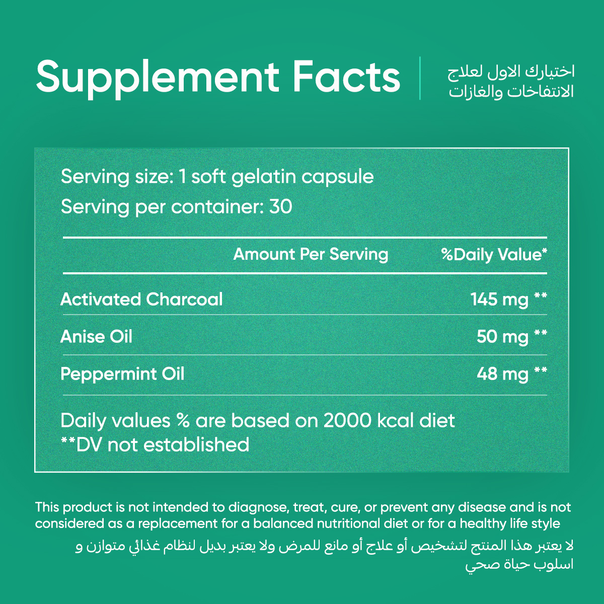 It combines high-purity activated charcoal with anise oil and peppermint oil to deliver fast, soothing relief for the digestive system.