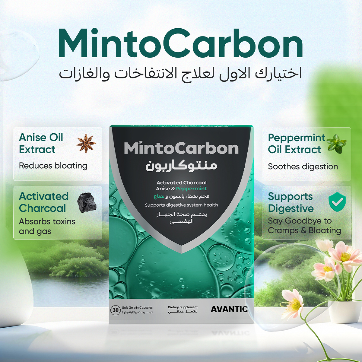 MintoCarbon | Natural Digestive Support for Bloating, Gas & Colon Comfort