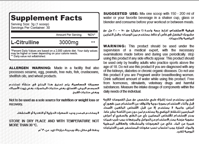 Pure L-Citrulline (3000mg per serving).