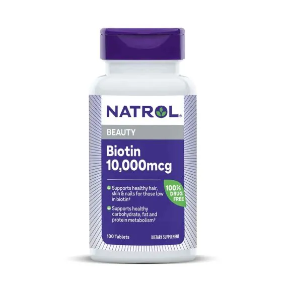• Natrol Biotin 10,000 mcg / 5,000 mcg is a high-potency vegan dietary supplement designed to support your natural beauty from within. Each bottle contains 100 fast-dissolving vegetarian tablets that promote stronger hair, glowing skin, and resilient nails by enhancing keratin production and vital cellular functions linked to Vitamin B7.