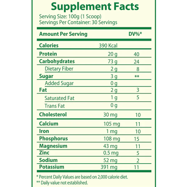 Energy & Strength – Delivers 146g of complex carbs and 780 calories to fuel your body during intense training sessions.