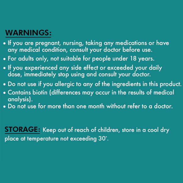 Biotin (B7): 30 mcg – 100% DV