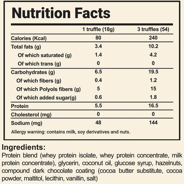 🔍 Nutritional Breakdown (Per 3 Truffles – 54g)